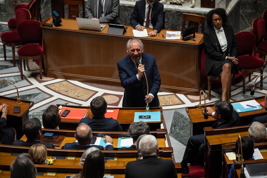 O primeiro-ministro francês, François Bayrou, apresenta sua declaração de política geral antes de um voto de confiança sobre o plano de corte orçamentário, em Paris, França, em 8 de setembro de 2025. (Foto por Aurelien Morissard/Xinhua)