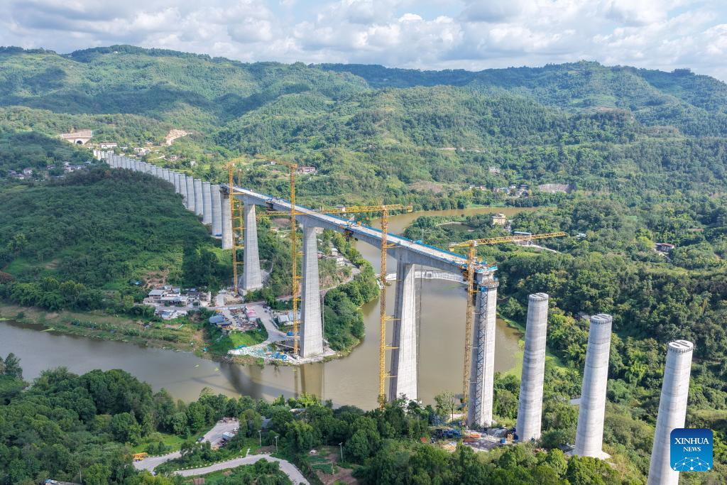 Concluída estrutura principal da grande ponte de via dupla da ferrovia de alta velocidade Chongqing-Wanzhou