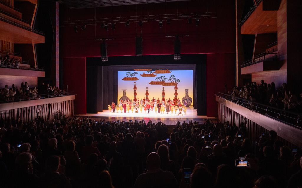 Público levanta-se para aplaudir a apresentação dos artistas do Balé Nacional da China, na Cidade das Artes, do Rio de Janeiro, no Brasil, em 9 de outubro de 2025. (Xinhua/Wang Tiancong)