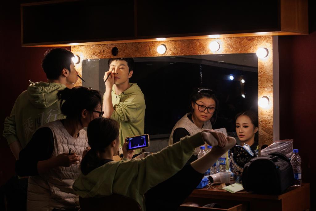 Artistas do Balé Nacional da China preparam-se para a apresentação na Cidade das Artes, do Rio de Janeiro, no Brasil, no dia 9 de outubro de 2025. (Claudia Martini/Xinhua)
