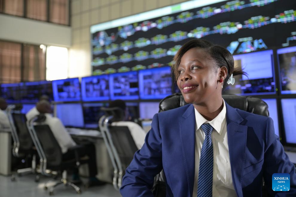 Damaris Mutinda trabalha no Centro de Despacho Ferroviário da Ferrovia Mombasa-Nairobi de Bitola Padrão (SGR, na sigla em inglês) da Kenya Railways em Nairóbi, Quênia, em 30 de setembro de 2025. (Xinhua/Yang Guang)