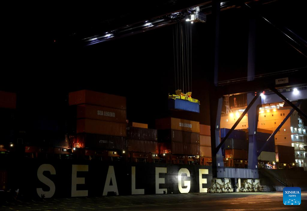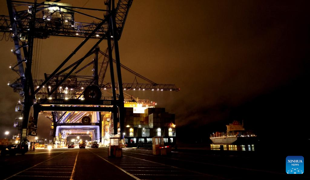 "Ponte Istambul", o primeiro navio da rota expressa de contêineres China-Europa para o Ártico, descarrega carga no Porto de Felixstowe, no Reino Unido, em 13 de outubro de 2025. Após uma viagem de 20 dias, o primeiro navio da rota expressa de contêineres China-Europa Ártica chegou na noite de segunda-feira ao Porto de Felixstowe, no leste da Inglaterra. A rota oferece uma clara vantagem de tempo em relação aos cerca de 25 dias do China-Expresso Ferroviário Europeu, cerca de 40 dias pelo Canal de Suez e cerca de 50 dias contornando o Cabo da Boa Esperança. Batizado de "Ponte Istambul", o navio porta-contêineres partiu do Porto de Ningbo-Zhoushan, no leste da China, transportando cerca de 4.000 unidades equivalentes a vinte pés (TEUs) de carga. Ele descarregará sua carga em portos no Reino Unido, na Alemanha, na Polônia e na Holanda. (Xinhua/Li Ying)
