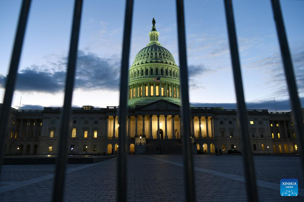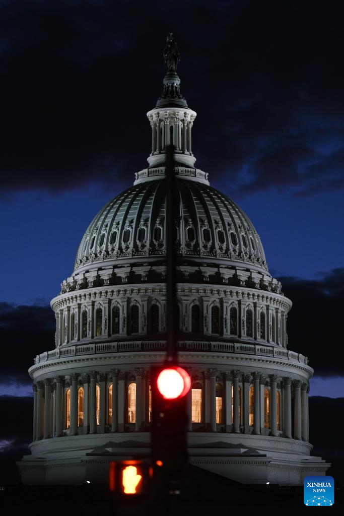 O Capitólio dos EUA ao pôr do sol em Washington, D.C., Estados Unidos, em 15 de outubro de 2025. (Xinhua/Li Rui)