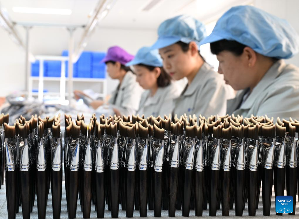 Fabricação de pincel de maquiagem impulsiona economia local no Distrito de Qingxian, na Província de Hebei-Xinhua