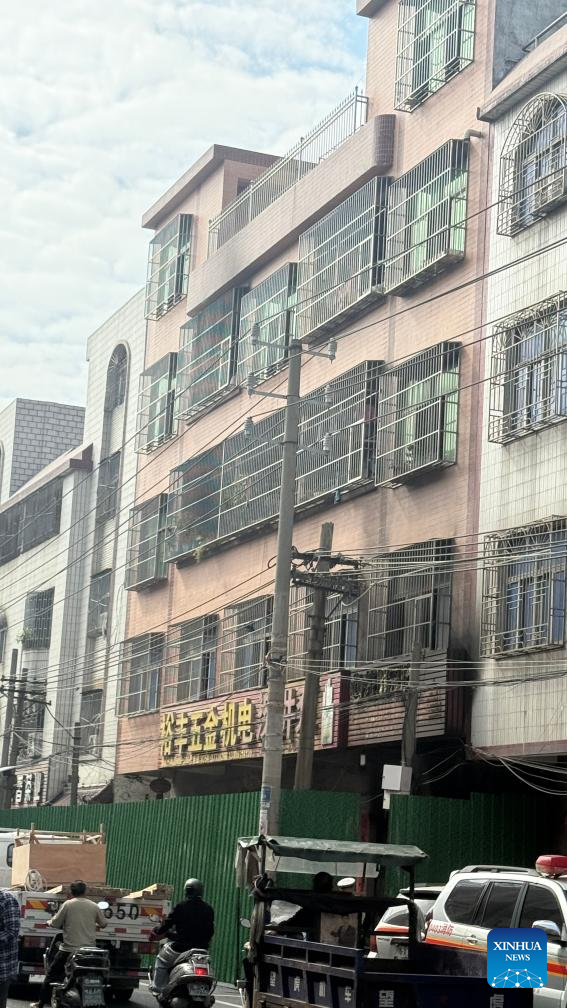 Foto mostra o local de incêndio em um prédio residencial no distrito de Chaonan, na cidade de Shantou, Província de Guangdong, no sul da China, em 10 de dezembro de 2025. (Xinhua/Zhao Ziyu)