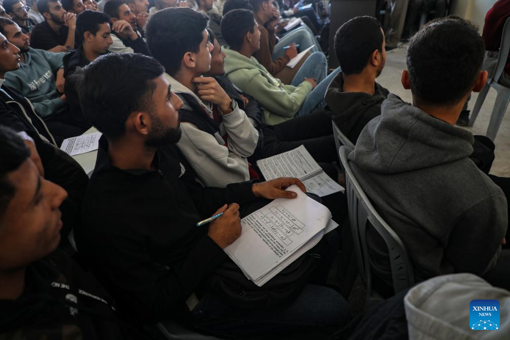 Estudantes palestinos assistem a uma aula na Universidade Islâmica, na Cidade de Gaza, em 7 de dezembro de 2025. (Foto por Rizek Abdeljawad/Xinhua)