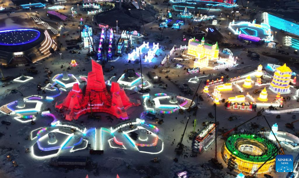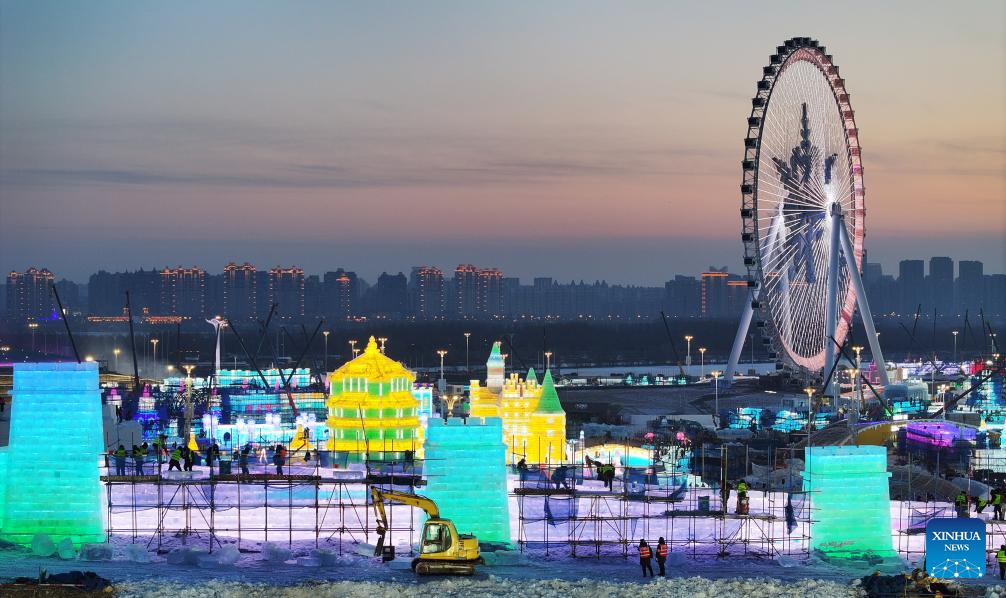 Mundo de Gelo e Neve em Harbin entra na fase final de construção-Xinhua
