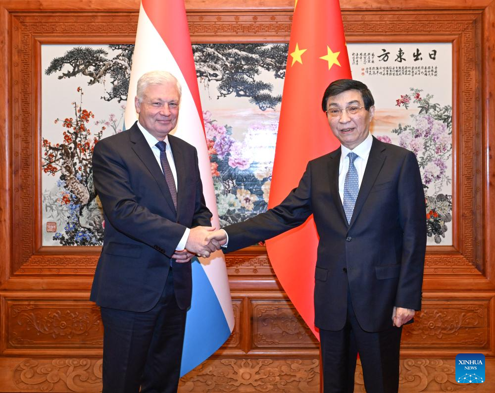 Wang, presidente do Comitê Nacional da Conferência Consultiva Política do Povo Chinês (CCPPC), disse que a China está disposta a trabalhar com Luxemburgo, sob a orientação estratégica dos dois chefes de Estado, para manter o respeito mútuo, fortalecer a confiança mútua, aprofundar a cooperação e buscar o desenvolvimento comum.
