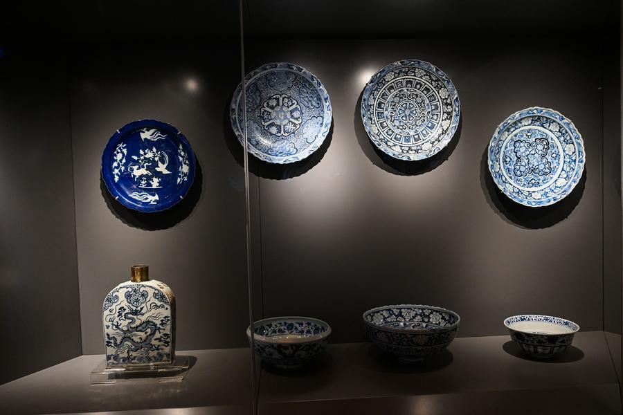 Foto tirada em 14 de fevereiro de 2025 mostra porcelanas chinesas no novo museu de porcelana do Palácio Topkapi, em Istambul, Turquia. (Xinhua/Liu Lei)