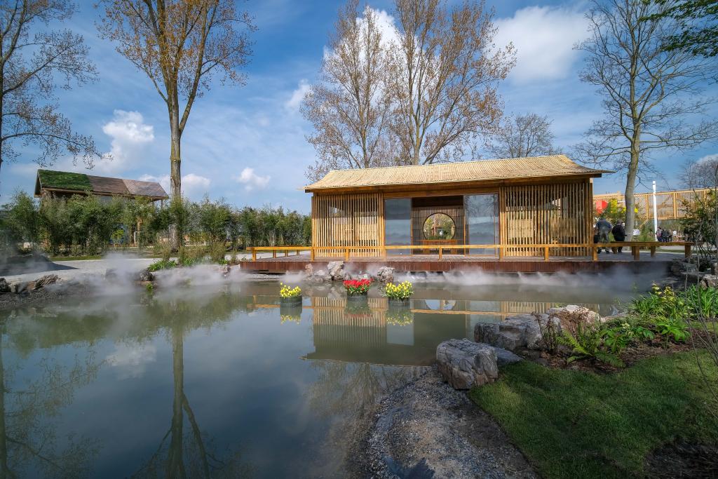 Foto tirada em 14 de abril de 2022 mostra pavilhão da China na Exposição Floriade 2022 em Almere, Holanda. (Xinhua/Zhang Cheng)