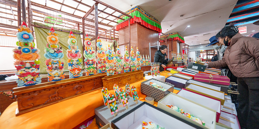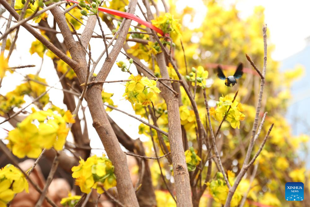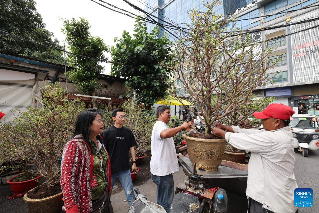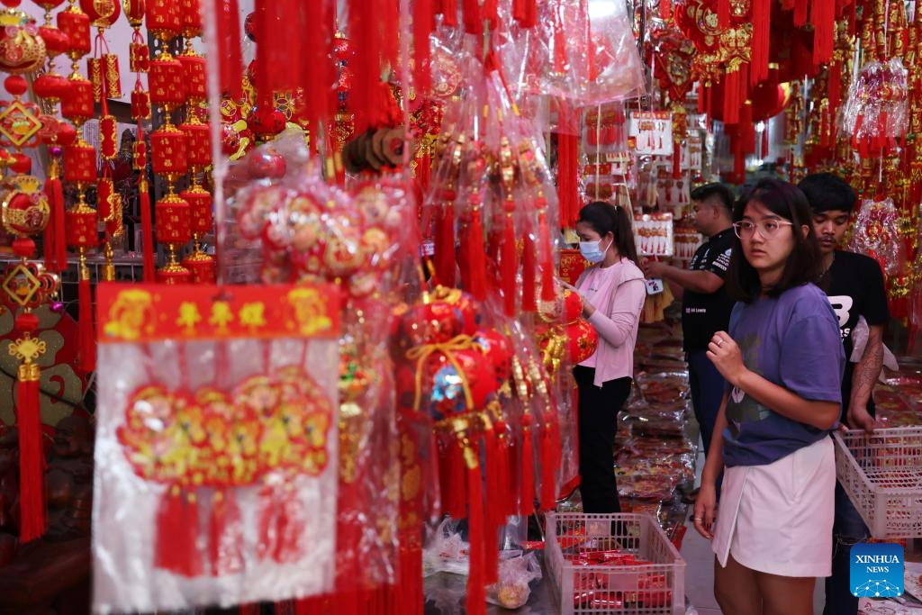 Moradores compram decorações de Ano Novo Chinês em Phnom Penh, Camboja-Xinhua