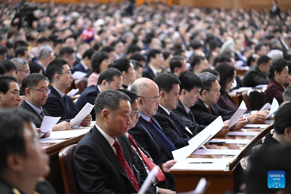 O presidente chinês, Xi Jinping, juntamente com outros líderes, participou da reunião de abertura da quarta sessão do 14º Comitê Nacional da CCPPC no Grande Palácio do Povo.