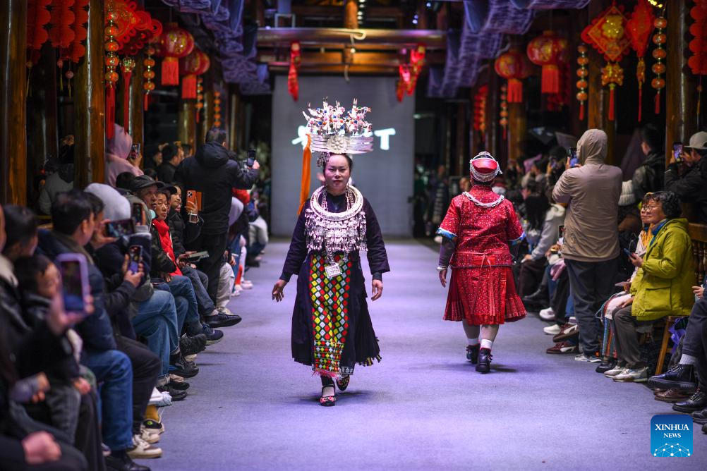 Passarela do desfile "Village T" celebra a moda enraizada no orgulho cultural em Guizhou, no sudoeste da China-Xinhua