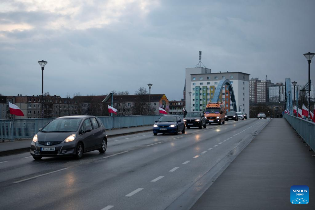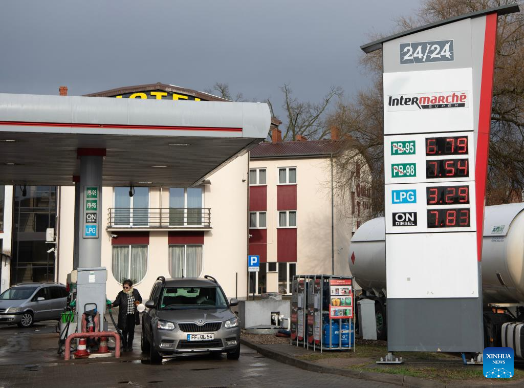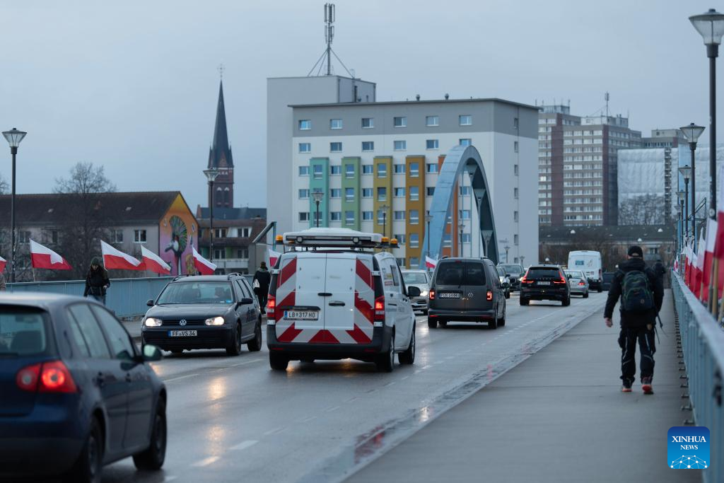 Berlim, 20 mar (Xinhua) -- Ao pôr do sol sobre o rio Oder, o contraste entre os dois lados da fronteira é impressionante. No lado alemão, os postos de gasolina permanecem praticamente silenciosos. A apenas algumas centenas de metros do outro lado da ponte, na Polônia, no entanto, as bombas de combustível fervilham de atividade, a maioria de carros com placas alemãs.