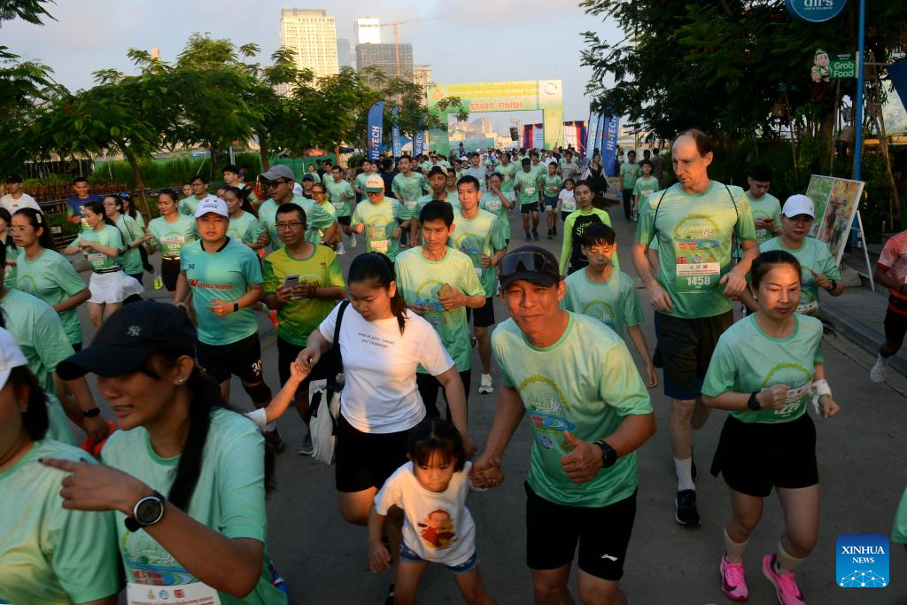 Centenas de pessoas participaram de uma corrida beneficente de 5 km ao longo da margem do rio Mekong, na capital do Camboja, no sábado, para celebrar a Semana da Cooperação Lancang-Mekong (LMC) 2026 e o 10º aniversário da LMC. (Foto de Phearum/Xinhua)