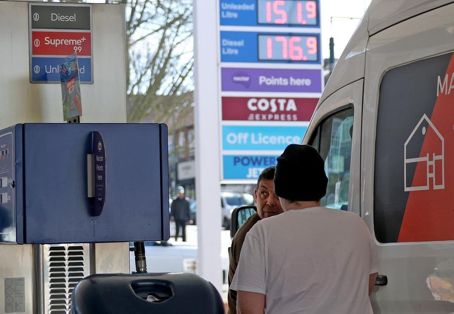 Um motorista abastece carro em um posto de gasolina em Londres, Reino Unido, em 26 de março de 2026. (Xinhua/Li Ying)