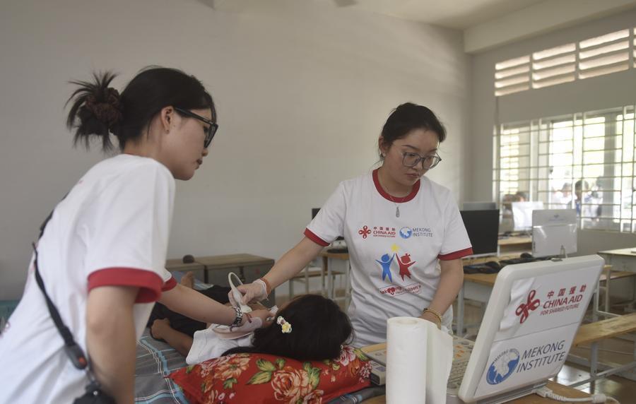 Kampot, Camboja, 3 abr (Xinhua) -- Phou Lika, estudante de 10 anos de uma escola primária no sudoeste do Camboja, ficou um pouco chocada na quinta-feira depois que médicos do projeto Mekong de cuidados cardíacos infantis, apoiado pela China, realizaram uma missão de diagnóstico cardíaco em sua escola e descobriram que ela tinha cardiopatia congênita (CC) desde que nasceu.