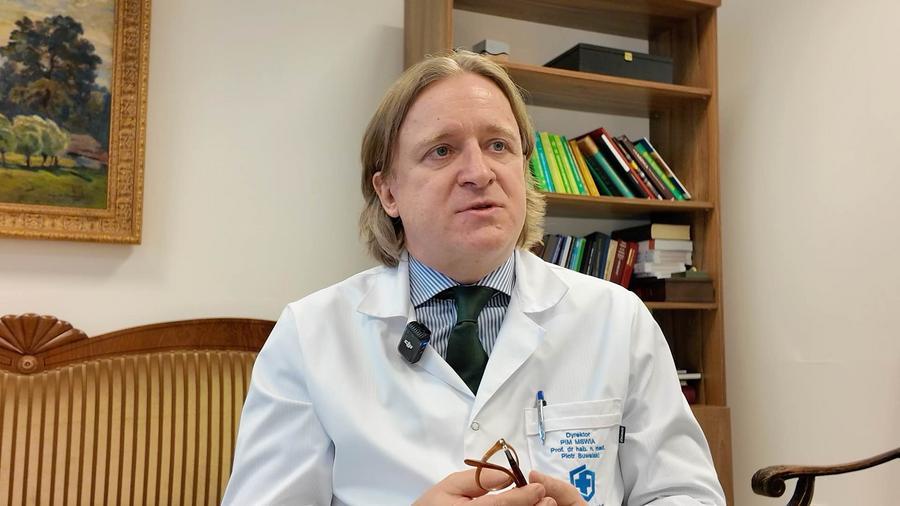 Piotr Suwalski, diretor do Instituto Médico Nacional do Ministério do Interior e Administração da Polônia, conversa com a Xinhua em Varsóvia, Polônia, em 15 de abril de 2026. (Xinhua/Xia Yuanyi)