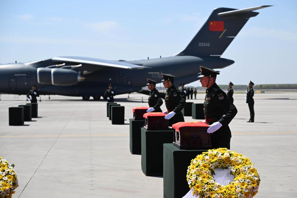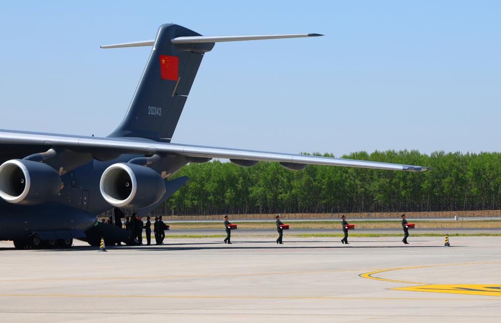Uma grande aeronave de transporte Y-20B da Força Aérea chinesa carregando os restos mortais dos soldados caídos e 146 de seus pertences pessoais pousou no Aeroporto Internacional Taoxian, em Shenyang, capital da Província de Liaoning, no nordeste da China.