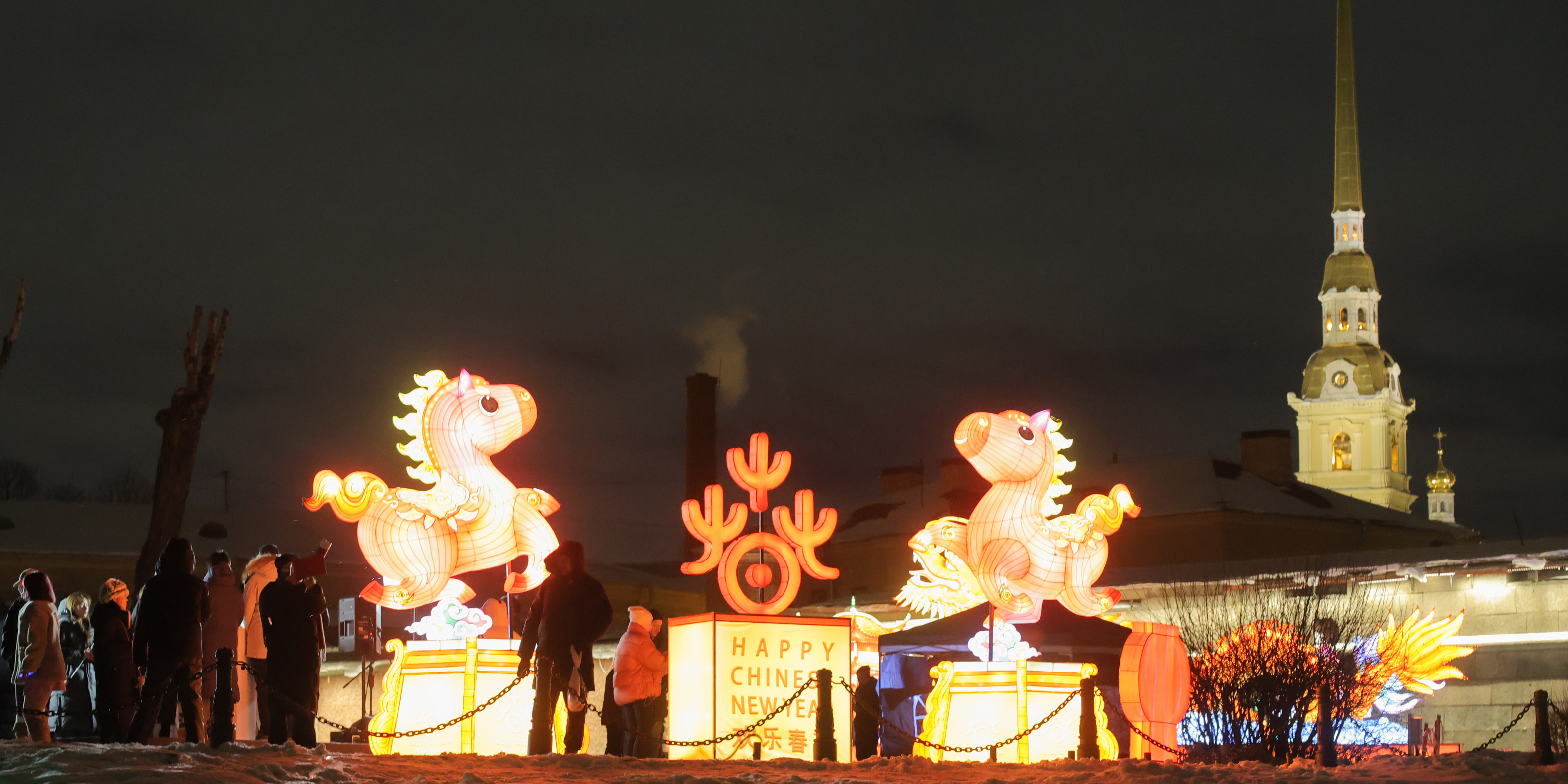 Instalações de luzes iluminam São Petersburgo em celebração ao Ano Novo Chinês
