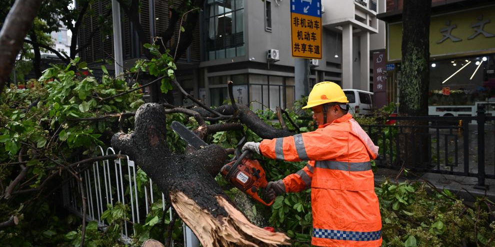Temporal com fortes ventos provoca queda de árvores em Guangzhou