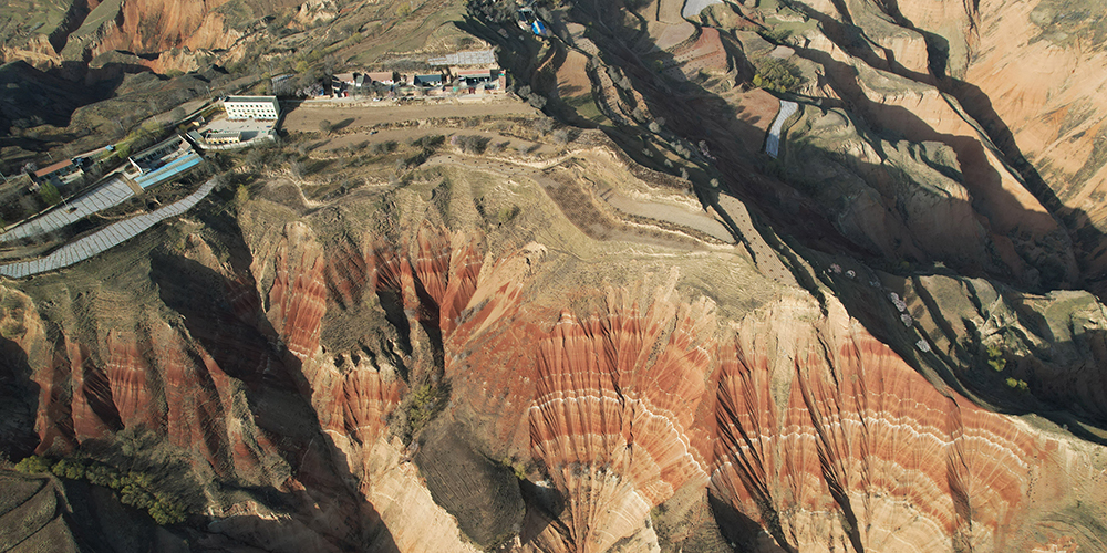 Paisagem do relevo Danxia na Vila de Dongyuan, na província chinesa de Gansu