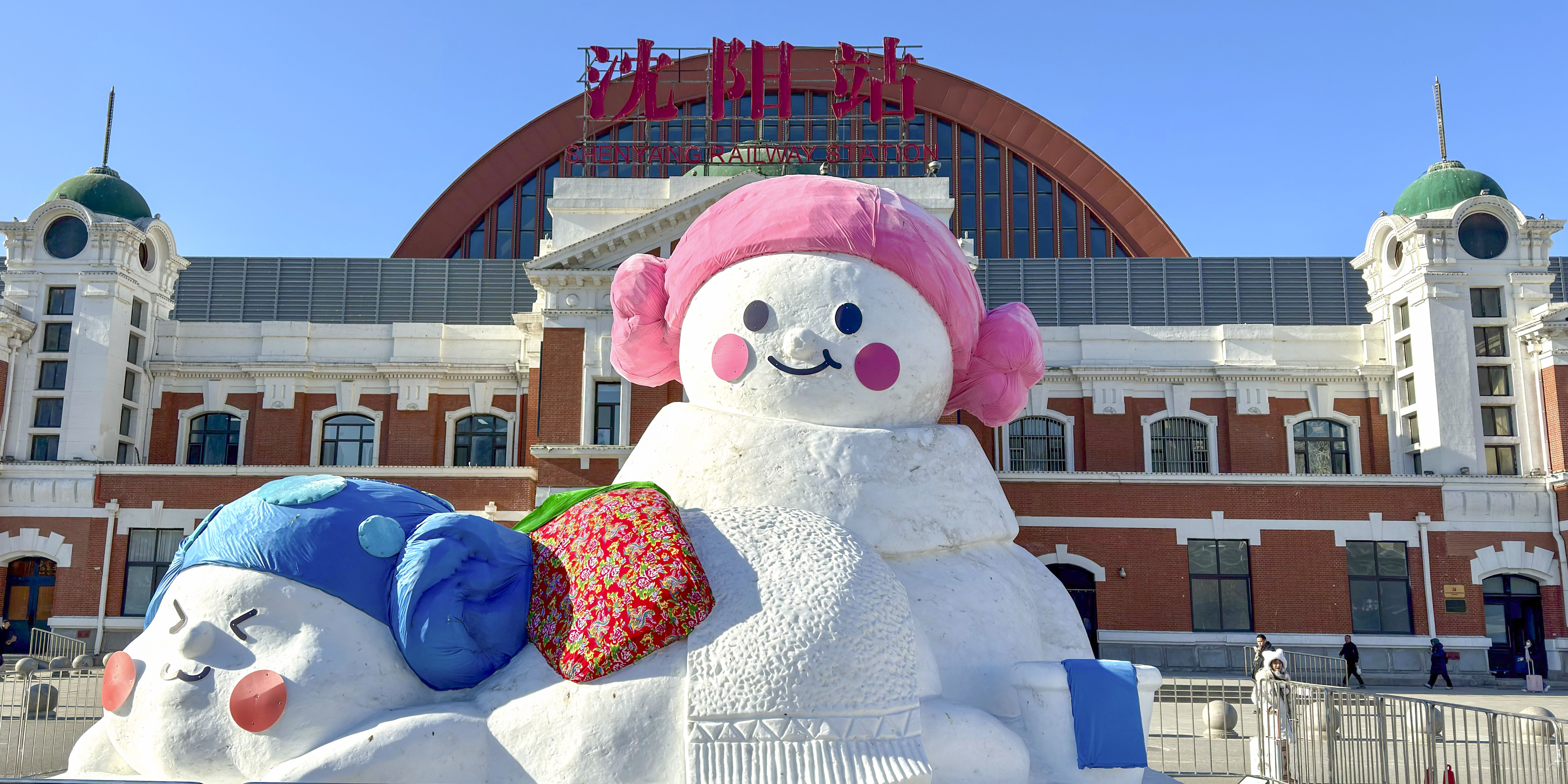Bonecos de neve gigantes surgem em Shenyang, Liaoning, nordeste da China