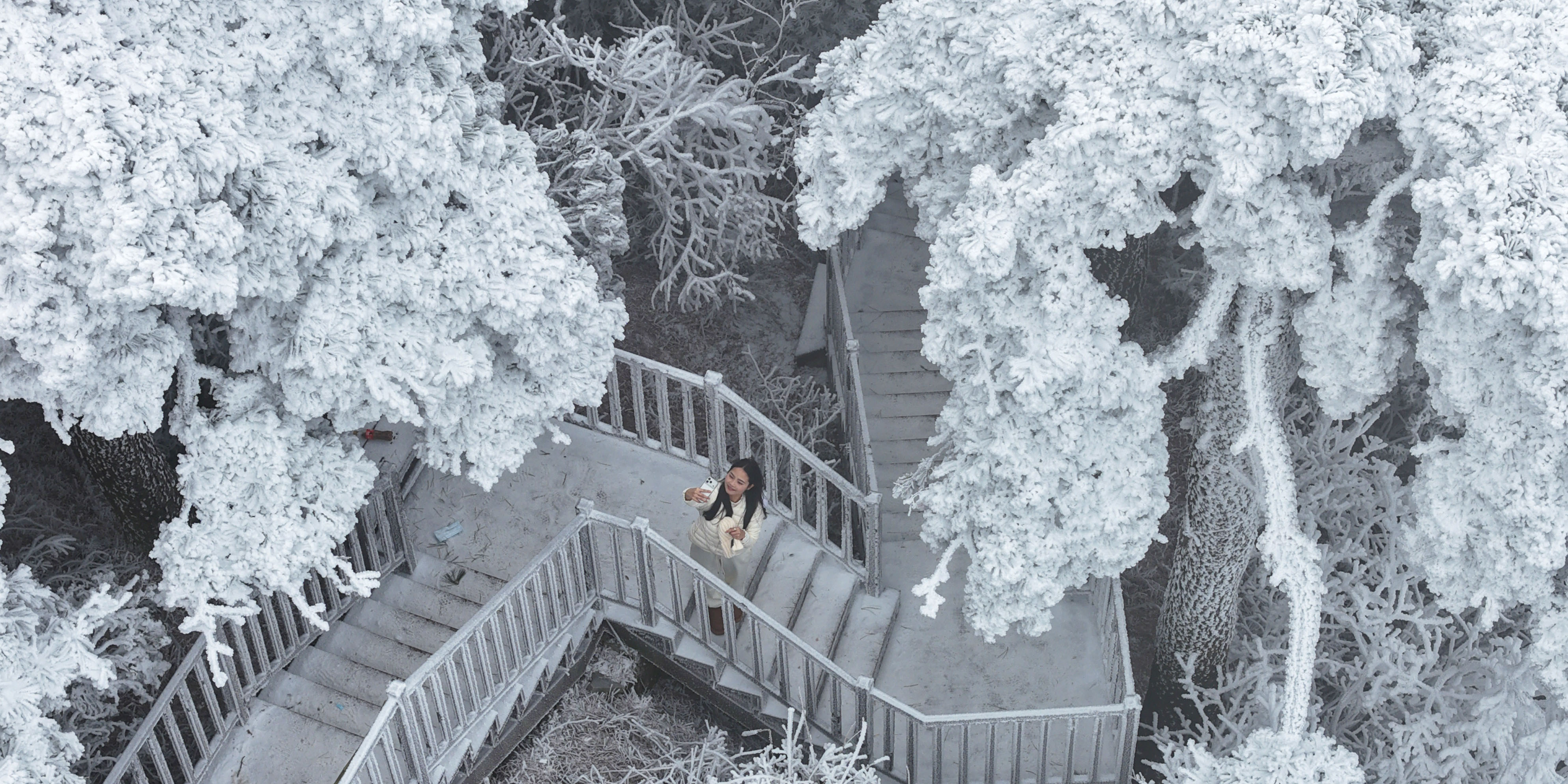 Paisagem de sincelo atrai visitantes à Montanha Hengshan, na província chinesa de Hunan