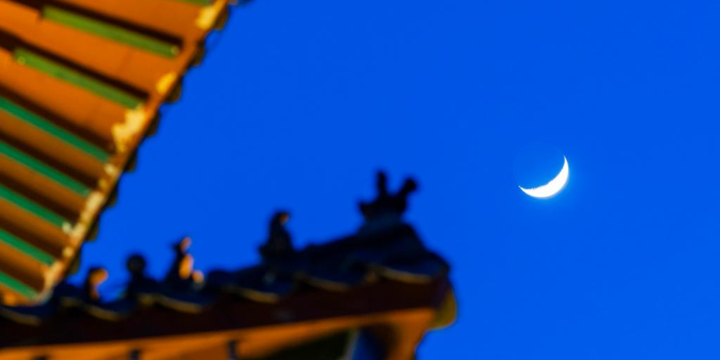 Lua crescente impressiona pela beleza no céu de Heilongjiang, nordeste da China