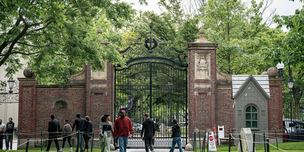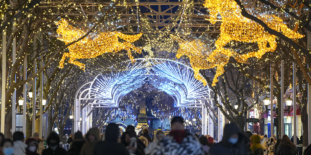 Turistas tiram fotos na praça de arte arquitetônica em Harbin