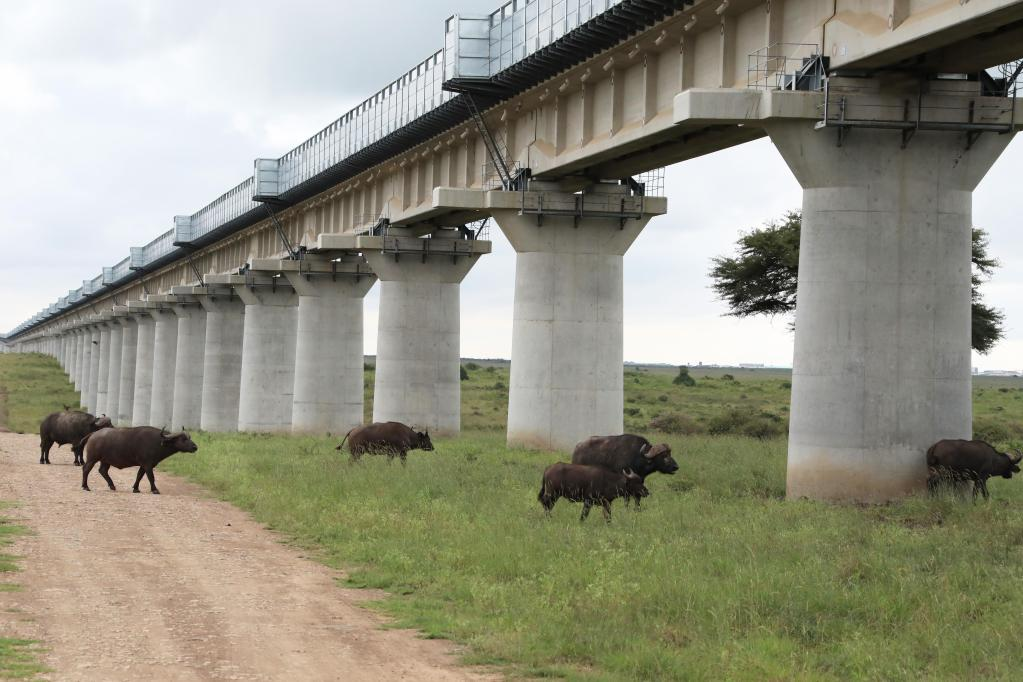 A fim de acomodar os hábitos de vida das espécies icônicas da vida selvagem do Quênia, como elefantes, girafas e outros animais de grande porte, a Ferrovia Mombasa-Nairóbi criou várias passagens para animais ao longo da ferrovia e aumentou a altura das pontes para para facilitar a passagem dos animais.