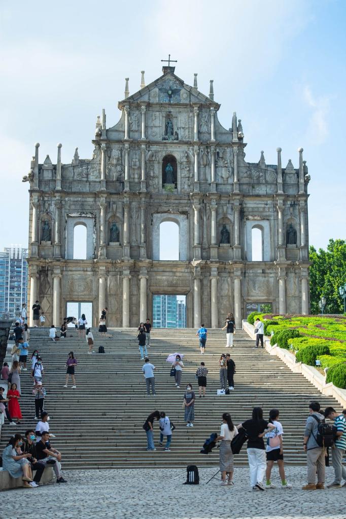 Visitantes são vistos nas Ruínas de São Paulo, em Macau, sul da China, em 27 de agosto de 2022. (Xinhua/Cheong Kam Ka)