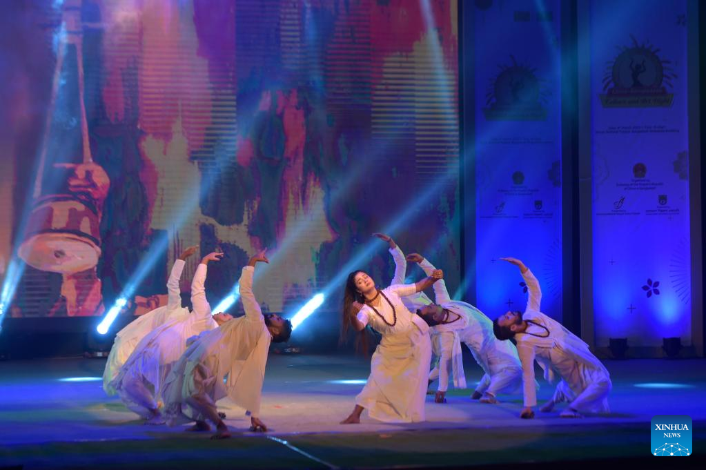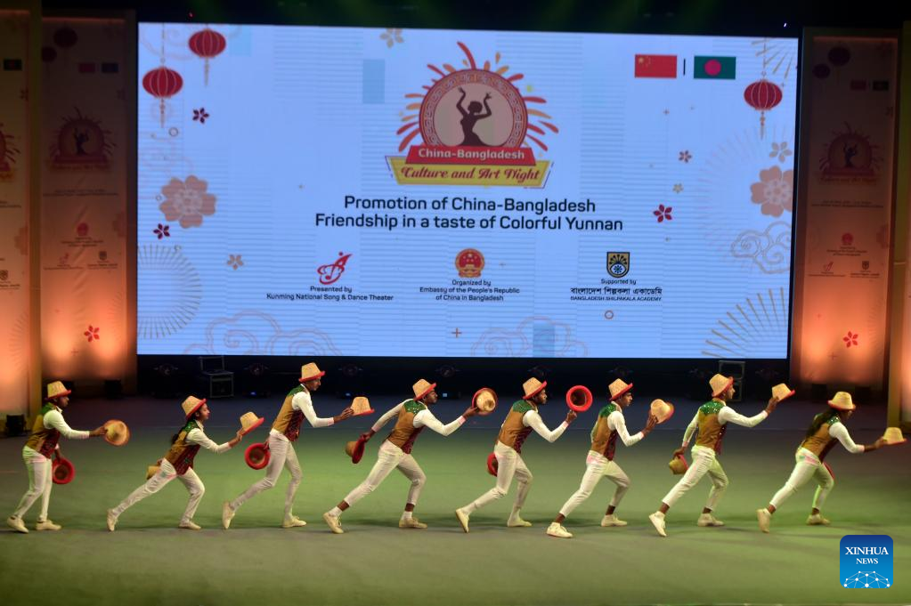 A Noite da Arte e Cultura China-Bangladesh, organizada pela embaixada chinesa em Bangladesh, foi apresentada pelo Kunming National Song & Dance Theatre, com o apoio da Bangladesh Shilpakala Academy ou BSA (a academia nacional de belas artes e artes cênicas de Bangladesh). (Xinhua)