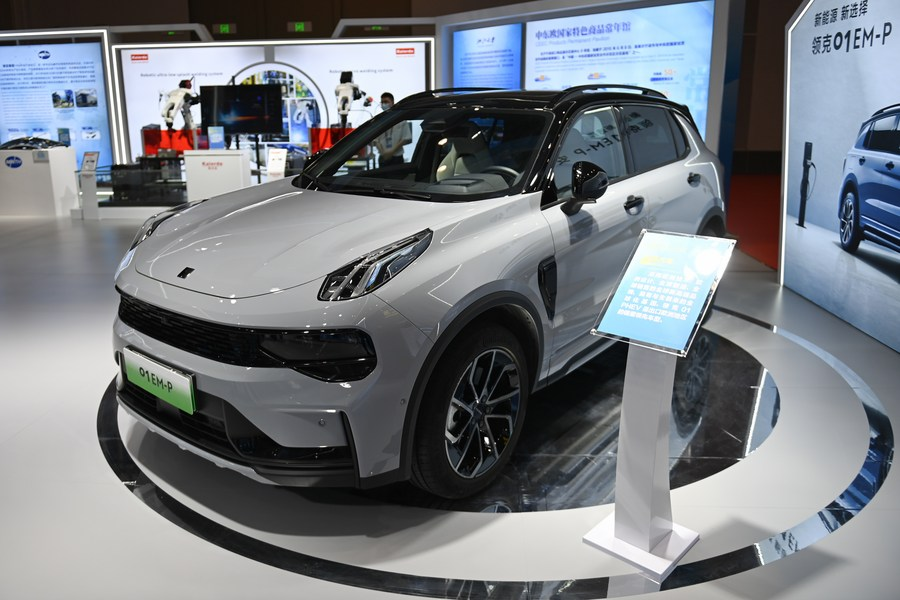 Veículo da marca Lynk & Co exportado para a Europa é exibido na Exposição China-PECOaíses da Europa Central e Oriental (PECO) em Ningbo, província de Zhejiang, leste da China, no dia 16 de maio de 2023. (Xinhua/Huang Zongzhi)