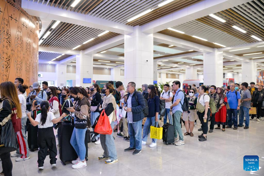 Passageiros fazem fila para usar trem da ferrovia de alta velocidade Jacarta-Bandung na área de espera da estação Halim em Jacarta, Indonésia, no dia 17 de novembro de 2023. De acordo com a PT Kereta Cepat Indonésia-China (KCIC), um consórcio de joint venture entre empresas estatais indonésias e chinesas que constrói e administra a ferrovia de alta velocidade Jacarta-Bandung, os trens transportaram cerca de 383.000 passageiros na ferrovia desde o início da operação comercial, com a maior taxa de ocupação diária atingindo 98,7%. (Xinhua/XuQin)