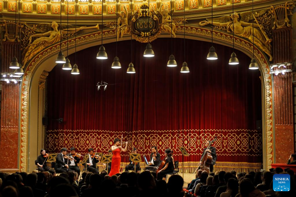 Bucareste, 19 nov (Xinhua) -- Em uma celebração retumbante da unidade cultural, o icônico Ateneu de Bucareste foi palco na noite de sábado de uma apresentação hipnotizante de duas horas da Orquestra de Cordas de Hong Kong e da virtuosa violinista chinesa Yao Jue.
