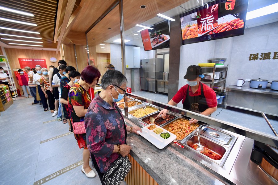 Uma cantina para idosos em uma comunidade no distrito de Jin'an de Fuzhou, capital da Província de Fujian, sudeste da China, 21 de junho de 2022. (Xinhua/Jiang Kehong)