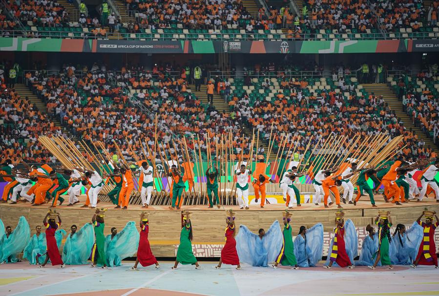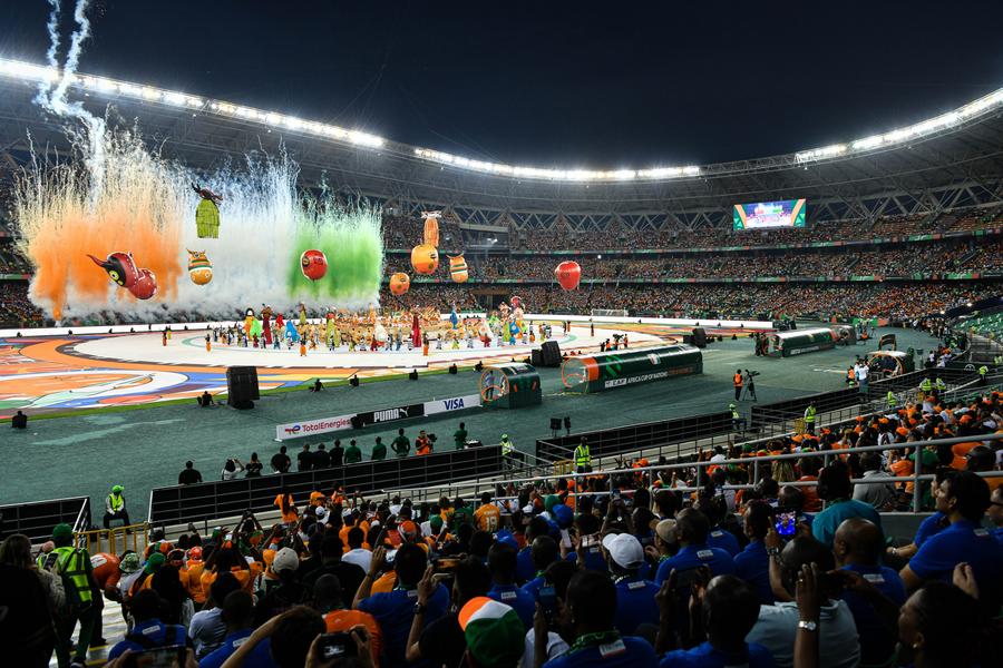 Foto tirada em 13 de janeiro de 2024 mostra a cerimônia de abertura da AFCON 2023. (Xinhua/Han Xu)