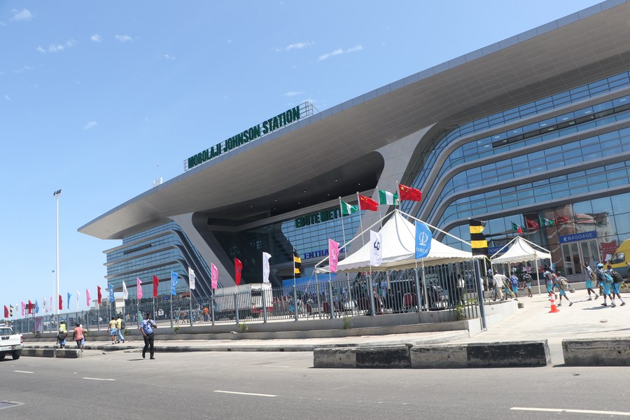 Foto tirada em 10 de junho de 2021 mostra a estação ferroviária Mobolaji Johnson da ferrovia Lagos-Ibadan em Lagos, Nigéria. (Foto por Emma Houston/Xinhua)