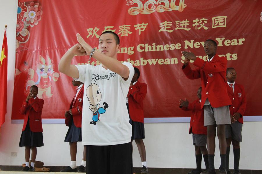 No Zimbábue, danças locais animadas e apresentações com tambores foram feitas na Escola Secundária da Amizade China-Zimbábue, em Harare, capital do país, dias antes da Festa da Primavera para celebrar o Ano do Dragão.