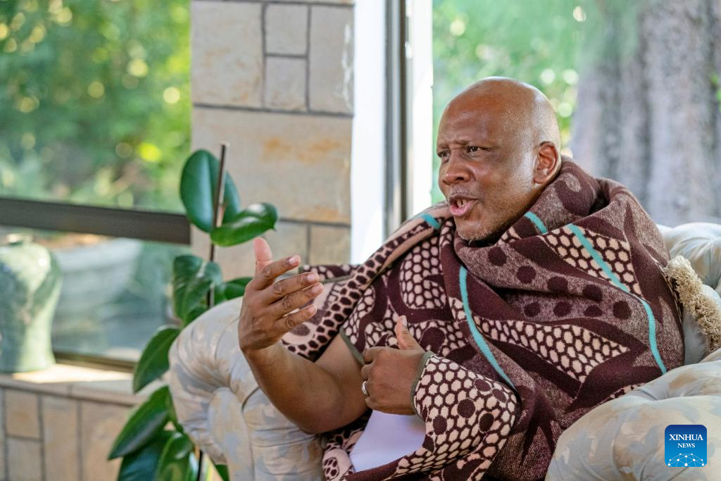 Letsie III, o rei do Lesoto, fala durante uma entrevista à Xinhua em Maseru, Lesoto, em 11 de março de 2024. (Xinhua/Zhang Yudong)