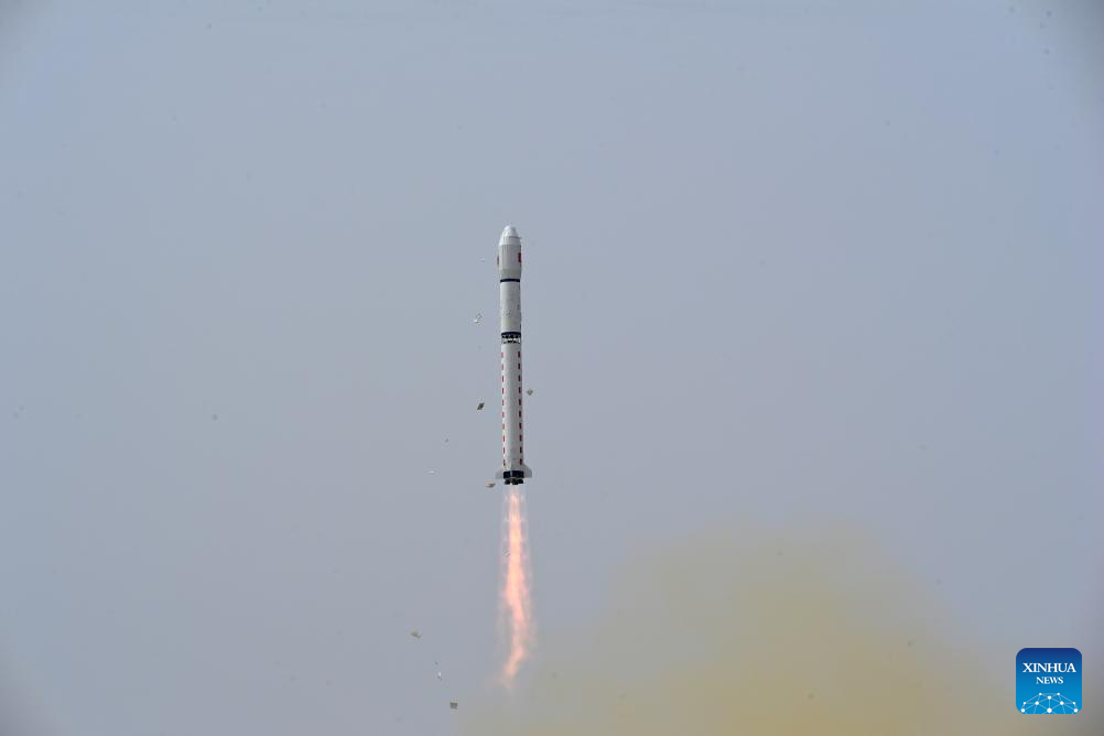 Jiuquan, 21 mar (Xinhua) -- A China enviou na quinta-feira um grupo de satélites para o espaço a partir do Centro de Lançamento de Satélites de Jiuquan, no noroeste da China.