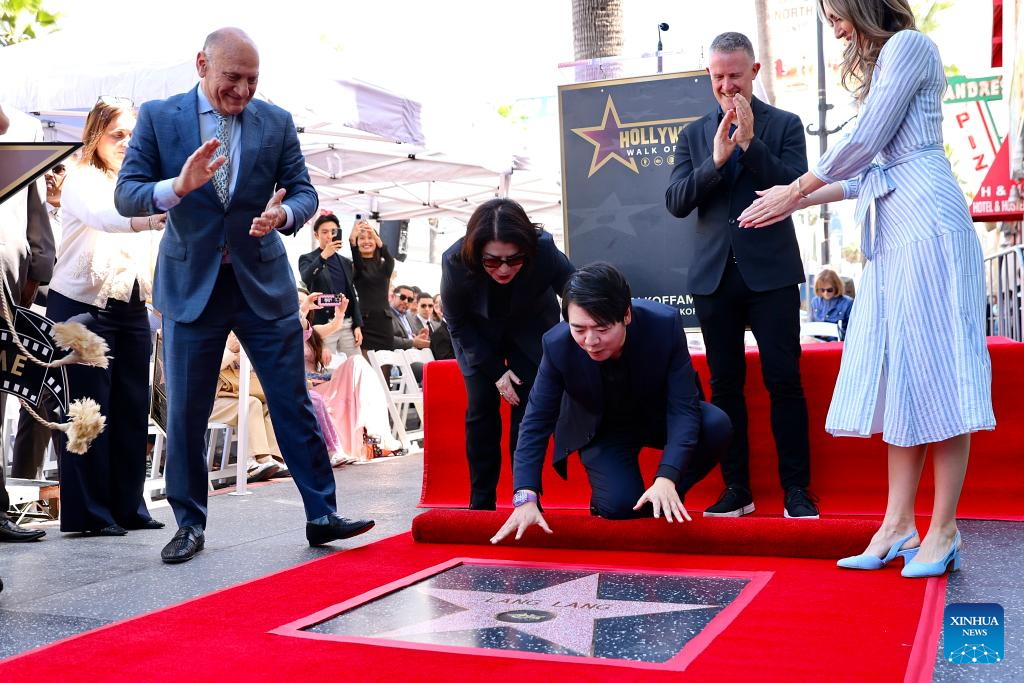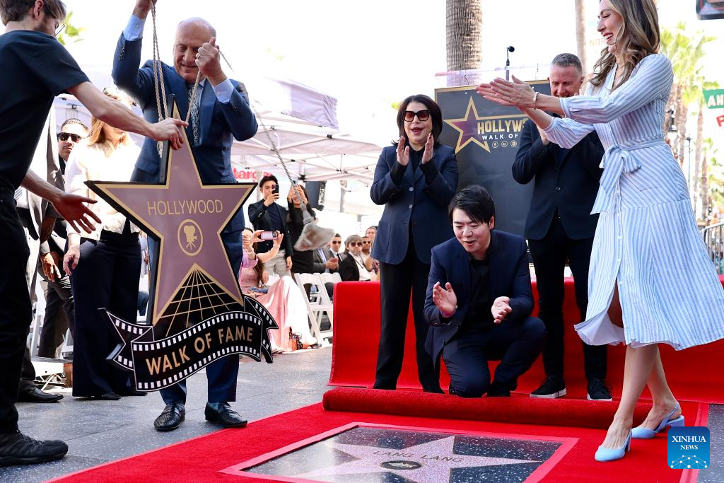 O pianista chinês Lang Lang participa de sua cerimônia na Calçada da Fama de Hollywood em Los Angeles, Califórnia, Estados Unidos, em 10 de abril de 2024. O pianista chinês Lang Lang ganhou nesta quarta-feira uma estrela na Calçada da Fama de Hollywood em Los Angeles, na categoria de performance ao vivo. (Xinhua)