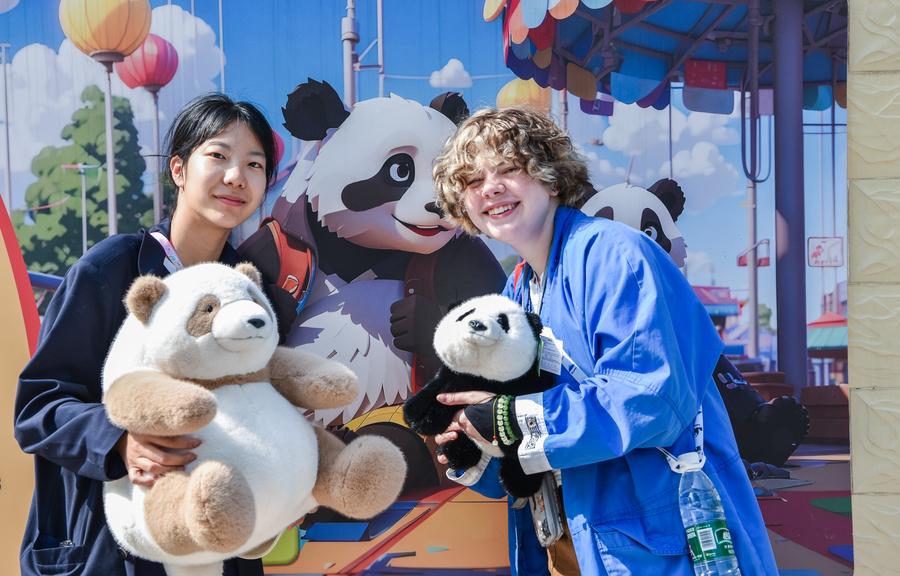 Estudantes chineses e americanos posam para uma foto no zoológico de Shijiazhuang em Shijiazhuang, Província de Hebei, no norte da China, em 21 de abril de 2024. (Foto por Liu Zunshuan/Xinhua)