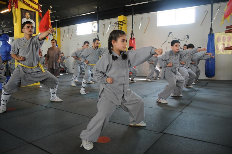 Bagdá, 23 jun (Xinhua) -- Em um clube de Wushu localizado na cidade de Sulaymaniyah, na região semi-autônoma do Curdistão iraquiano, mais de 100 entusiastas de artes marciais chinesas locais, vestidos com trajes tradicionais de treinamento, estão praticando diligentemente rotinas de Wushu, com cada golpe executado com força, precisão e um estrondoso grito curto "hé-há".