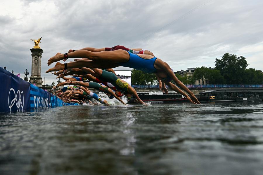 Paris, 8 ago (Xinhua) -- Em 31 de julho, triatletas olímpicos mergulharam no Sena, marcando a reabertura do rio para nadadores após um século de proibição devido à poluição. A melhoria da qualidade da água do Sena pode ser vista como um legado olímpico especial de Paris para o futuro.