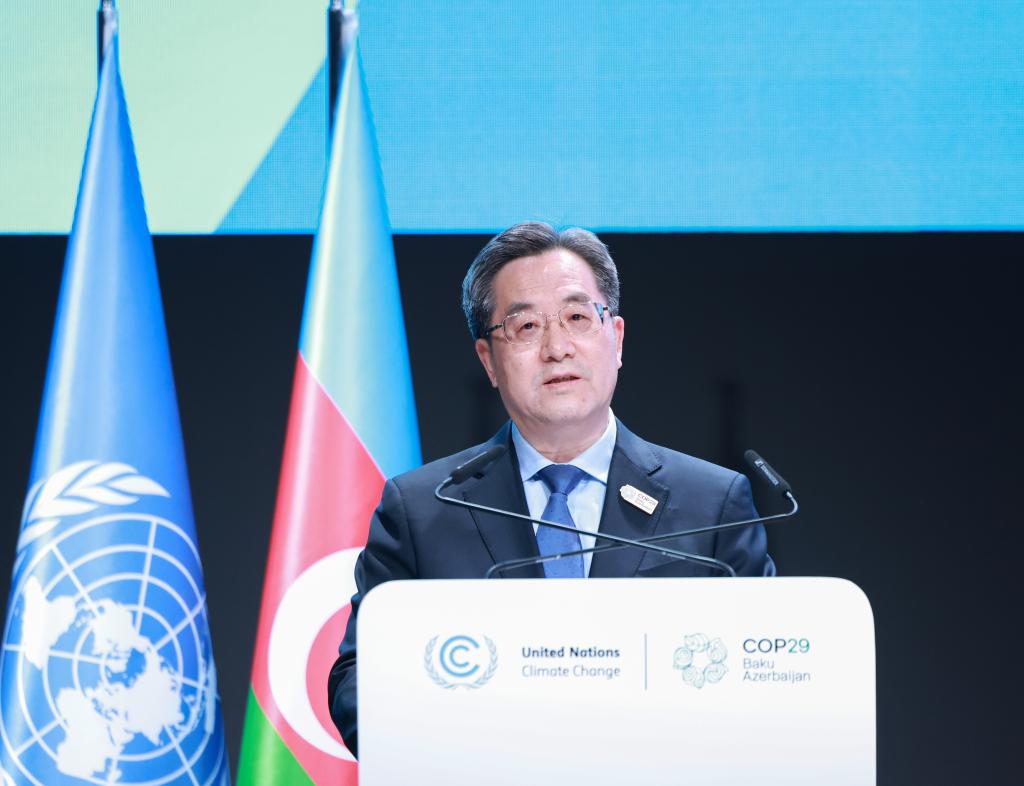 Ding, representante especial do presidente chinês, Xi Jinping, e membro do Comitê Permanente do Birô Político do Comitê Central do Partido Comunista da China, fez as observações ao discursar na Cúpula de Ação Climática dos Líderes Mundiais durante a 29ª sessão da Conferência das Partes da Convenção-Quadro das Nações Unidas sobre Mudança Climática (COP29) em Baku, Azerbaijão.
