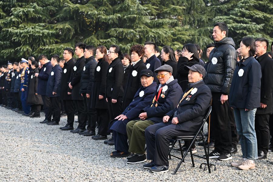 11ª cerimônia nacional de memória das vítimas do Massacre de Nanjing é realizada no Memorial Hall das Vítimas do Massacre de Nanjing pelos Invasores Japoneses em Nanjing, capital da província de Jiangsu, no leste da China, no dia 13 de dezembro de 2024. (Xinhua/Ji Chunpeng)