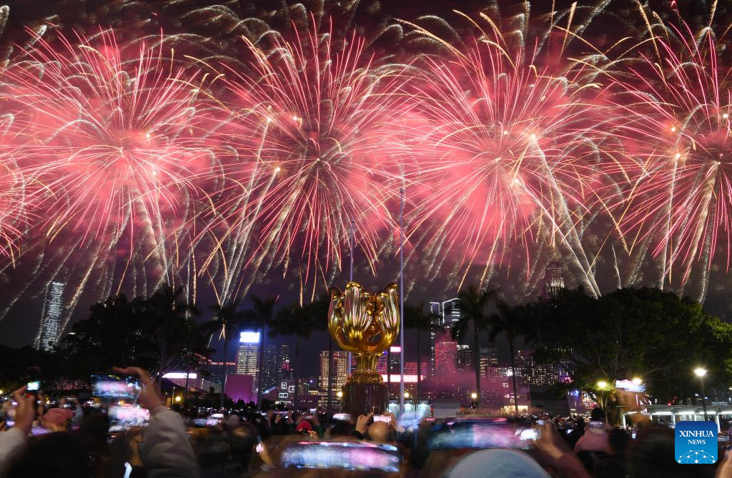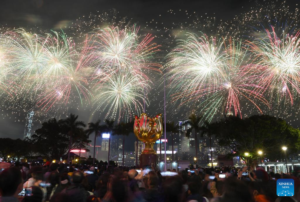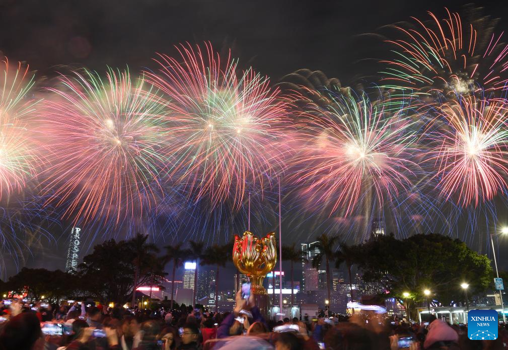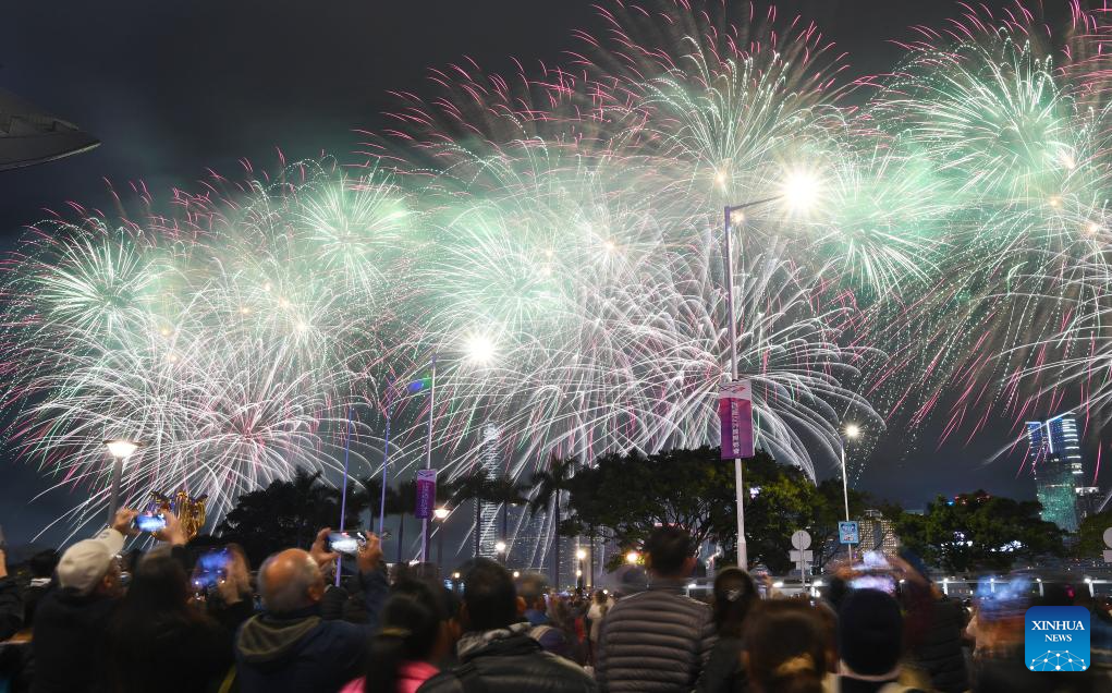 Fogos de artifício iluminam o ceú de Hong Kong na celebração da Festa da Primavera-Xinhua
