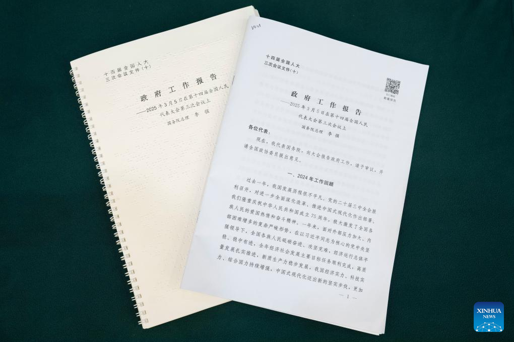 Relatório de trabalho do governo em Braille demonstra cuidado e apoio da China a pessoas com deficiência-Xinhua